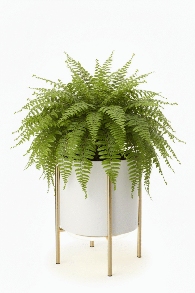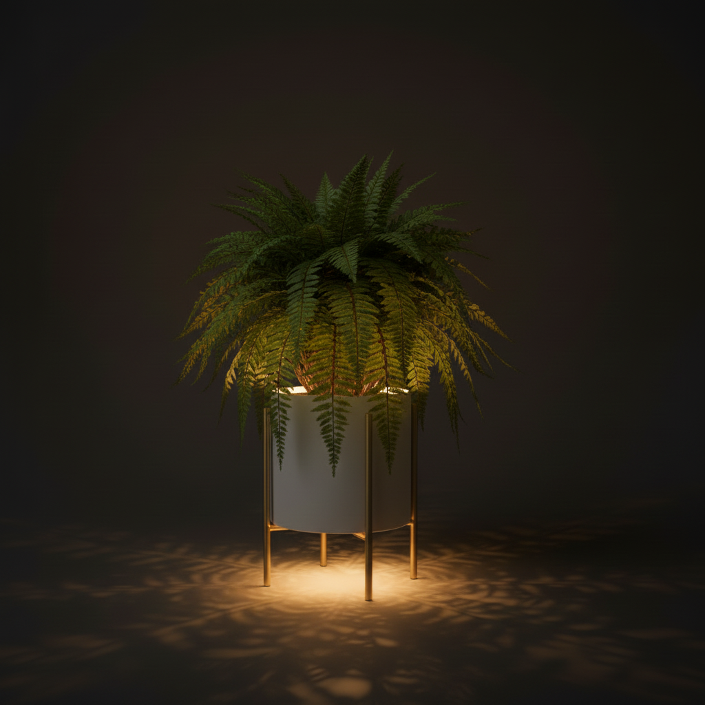 MistLeaf™ is designed for ultimate air comfort. The Boston Fern naturally humidifies and purifies air, creating a more soothing atmosphere for studying or resting. Paired with a gold stand and soft ring glow, this planter blends beauty with functionality. A sustainable, mental-wellness–powered upgrade for any room.